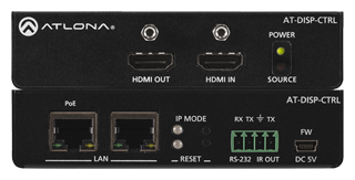 L'Atlona AT-DISP-CTRL est un contrôleur d'affichage compact, conçu pour les petits espaces de réunion et les salles de réunion. Le DISP-CTRL détecte la connexion d'un périphérique source avec un signal actif, puis envoie automatiquement une commande de contrôle pour allumer un affichage.